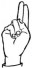 На ћирилици написано РАДОВАН СРЕДОЈЕВИЋ састоји се из 17 слова [?]. Исписано ћириличном једноручном азбуком за глувонеме: